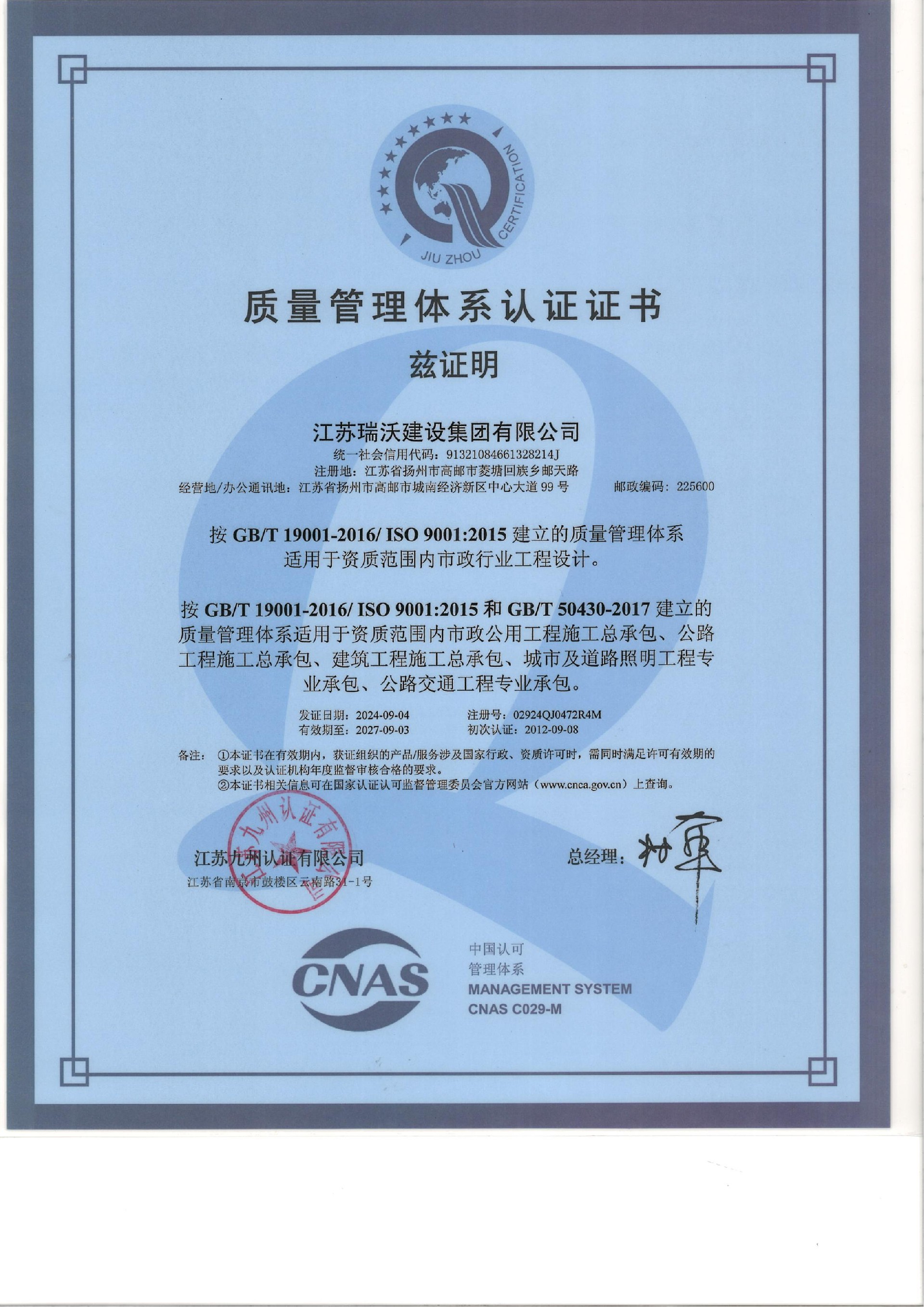 江蘇瑞沃建設集團有限公司成立于2007年,是一家以市政、交通工程建設為主導,集房屋建筑、交通安全設施、城市道路照明工程、電力工程、隧道工程、航道工程及投融資為一體的綜合性企業。企業注冊資本60000萬元,現有各類技術人員580人,其中中、高級以上人員498人,注冊類人員268人,一、二級建造師166人。公司榮獲“江蘇省建筑業優秀企業”、“江蘇省五一勞動獎狀”,連續多年被評為“揚州市先進企業”、“江蘇省建筑業百強企業”,連續八年蟬聯百強企業基礎設施類第一名。